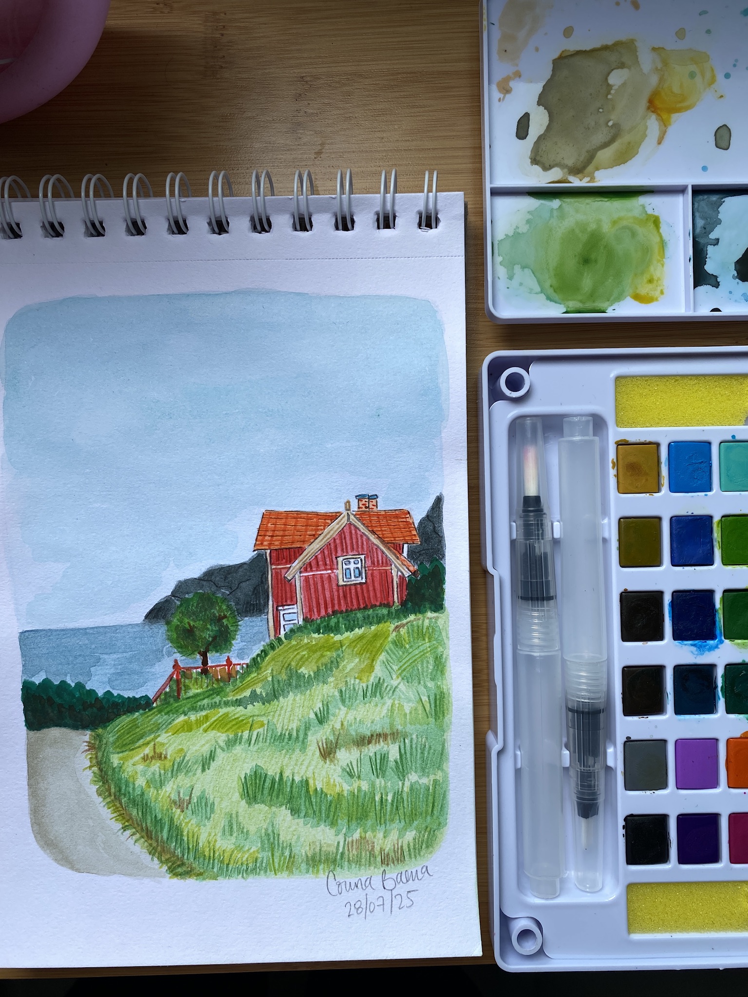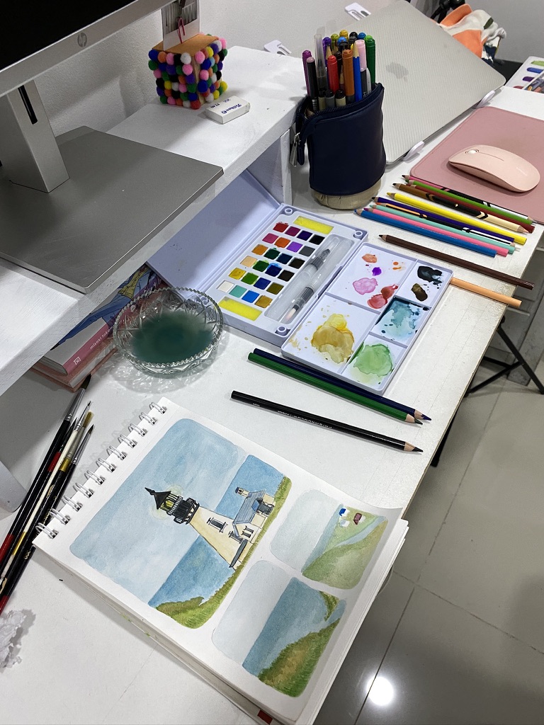Este mes que pasó me dediqué a practicar nuevamente con acuarelas, así que esta vez para no sentir tanta presión con los detalles y salir un poco de mi zona de confort, decidí empezar a pintar paisajes.
