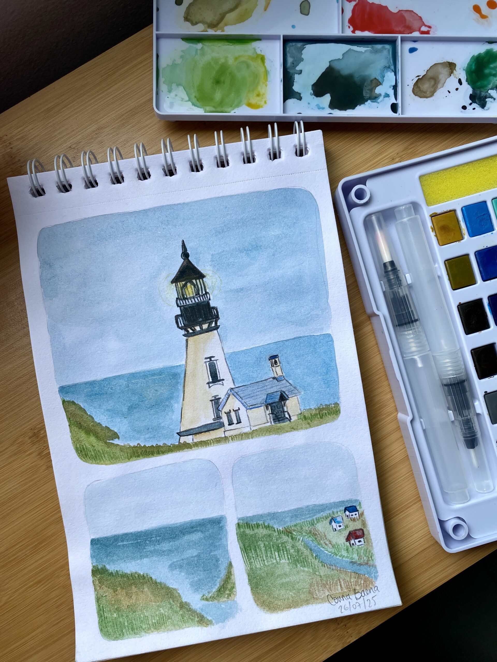 A continuación te dejo algunos de los paisajes que pinté y que estuve compartiendo por mis redes sociales. ¡Échales un vistazo y comenta en este blog qué te parecieron y si te gustaría aprender a pintar con acuarelas!